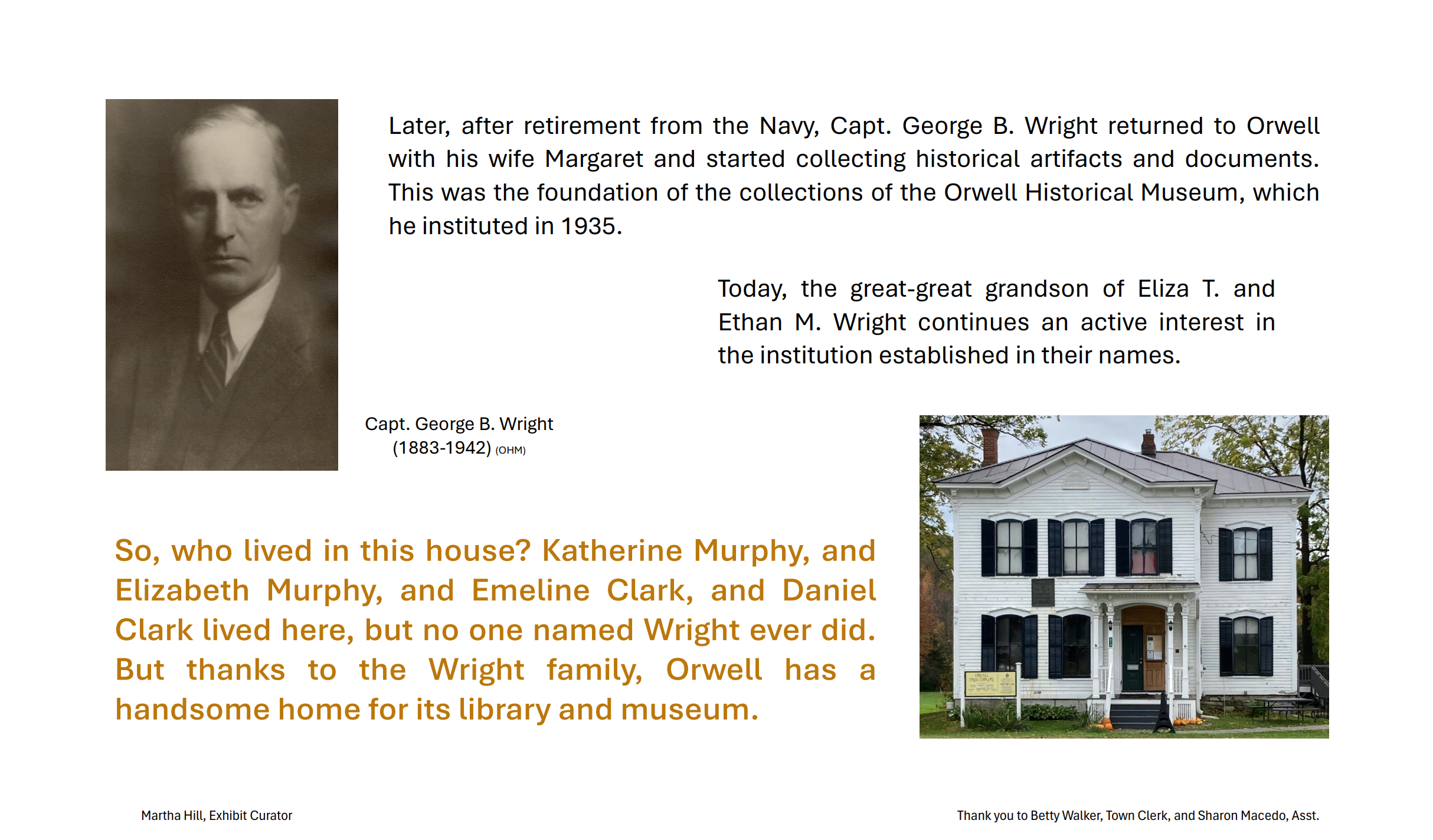 The Orwell, Vermont museum, housed in the historic Wright Memorial Building, is currently closed to visitors while members of the Orwell Historical Society and community volunteers conduct a professional and comprehensive audit of the collection’s historic artifacts, documents and photographs with the aim of expanding the relevancy and accessibility of our local history.